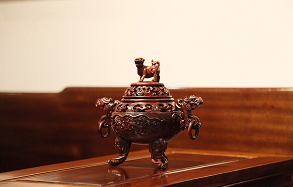 当一件家具组装完毕,其表面的装饰等“表面功夫”也不容忽视,这其中包括雕刻、镶嵌、打磨、上漆或上蜡等。在这其中,雕刻在装饰手法中占首要地位,因为家具绝大多数纹样是靠雕刻造出来的,就是攒斗、镶嵌也需要施加雕刻才能完成。按照技法,雕刻可以分为阴刻、浮雕、透雕、浮雕透雕结合、圆雕等,按照题材,有卷草、莲纹、云纹、灵芝、龙纹、螭纹、花鸟、走兽、山水、人物、吉祥文字图案、宗教图案等。